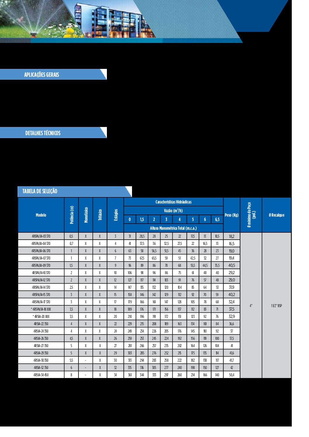 Aplicações • Bombeamento de águas subterrâneas em poços tubulares • Bomba de poço • Bomba de poço artesiano • Bomba de poço semiartesiano • Bomba submersa para poco • Bomba submersa para poco artesiano • Bomba submersa para poco semi-artesiano