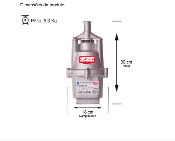 BOMBA SUBMERSA VIBRATÓRIA TSV-900 0,60 CV MONOFÁSICO MOTOR THEBE IP68 127V