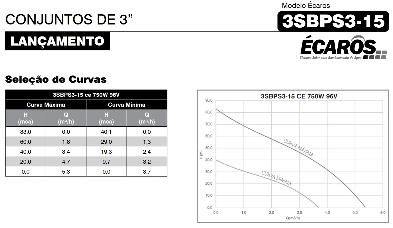 – Vazão máxima: 5,3 m³/h;